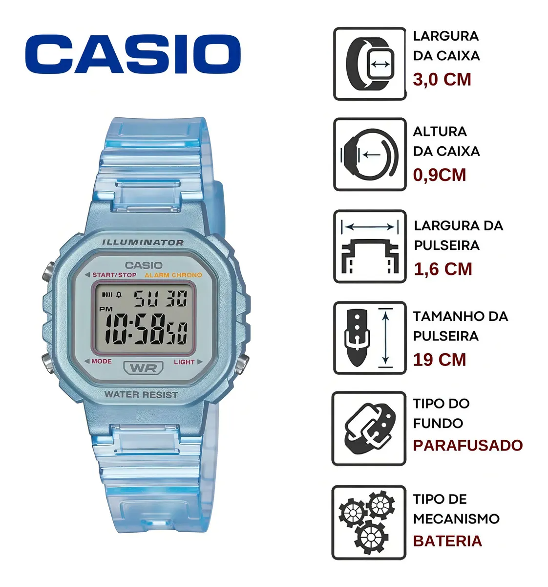 Relógio Pulso Casio Infantil Digital Azul La-20whs Original
